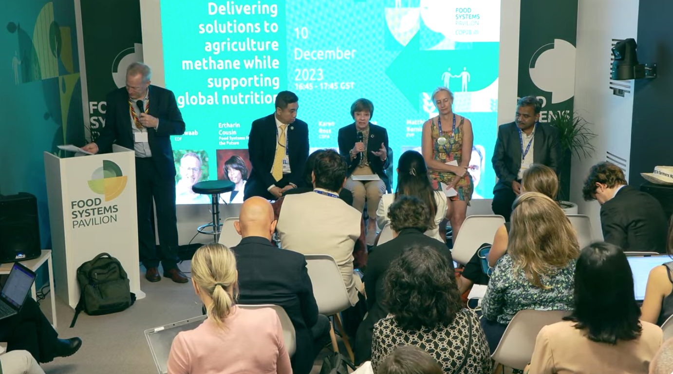 On 10 December, the session, ‘Delivering solutions to agriculture methane while supporting global nutrition’ at the Food Systems Pavilion tackled this challenge. The event delved into the critical role of mitigating methane emissions from agriculture to combat climate change while addressing the global challenge of malnutrition. The discussion emphasized the urgency of acting on methane reduction for immediate climate benefits. Prominent insights highlighted the idea that methane is not an unavoidable price for food security, challenging the perception of a trade-off between reducing emissions and ensuring access to food. Case studies from panelists highlighted successful approaches, such as California's investment in dairy farms and India's adoption of biogas digesters. The event called for coordinated efforts to ensure reduced emissions, improved nutrition and sustainable agriculture.