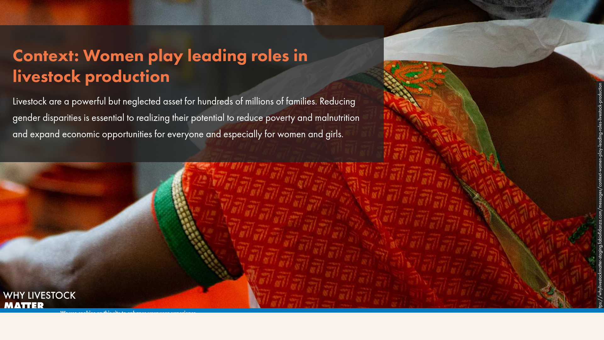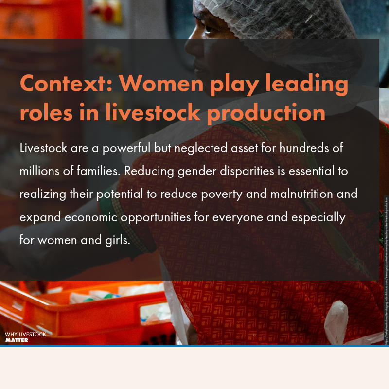 Livestock are a powerful but neglected asset for hundreds of millions of families. Reducing gender disparities is essential to realizing their potential to reduce poverty and malnutrition and expand economic opportunities for everyone and especially for women and girls.