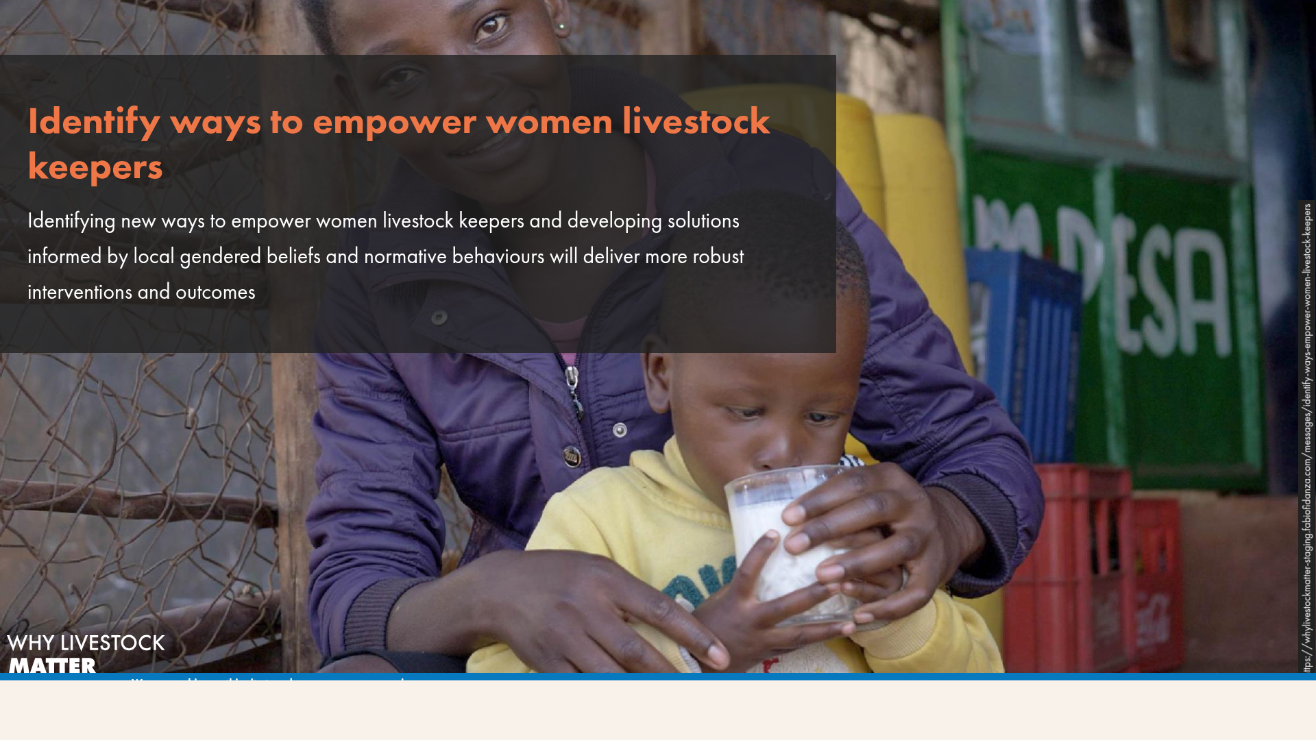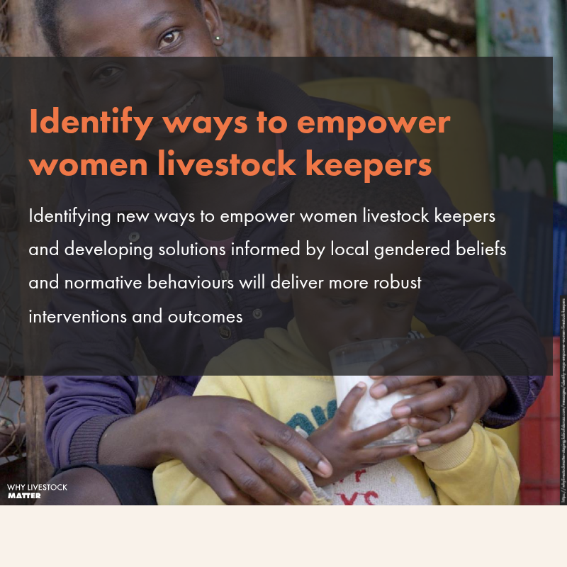 Identifying new ways to empower women livestock keepers and developing solutions informed by local gendered beliefs and normative behaviours will deliver more robust interventions and outcomes
