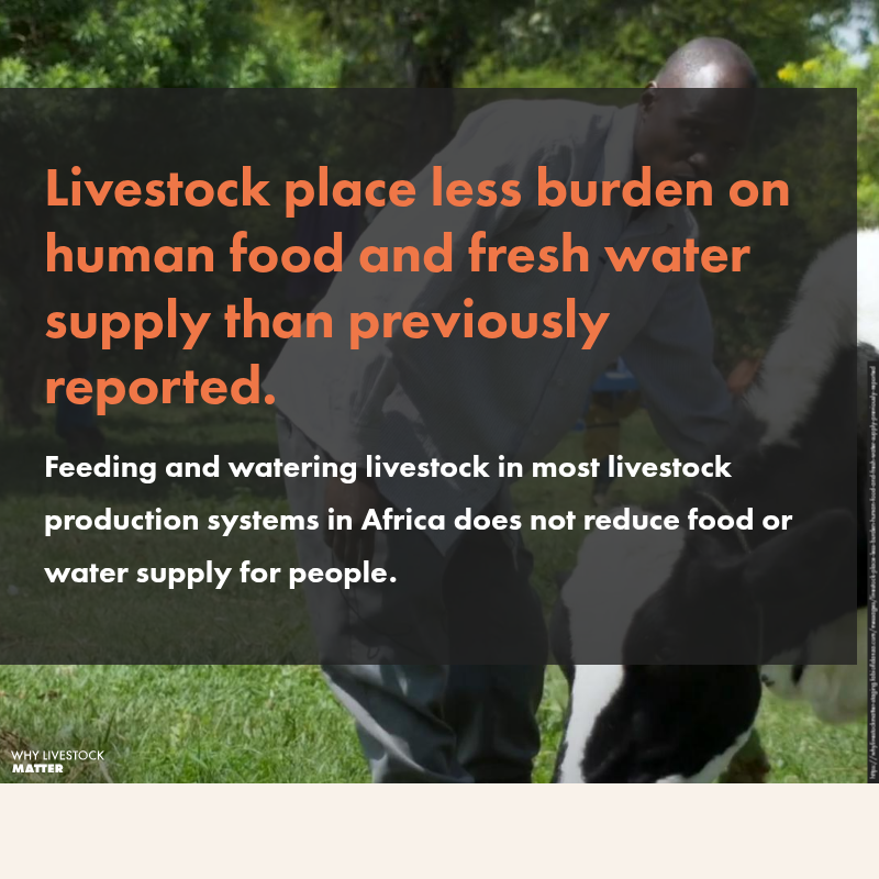 Feeding and watering livestock in most livestock production systems in Africa does not reduce food or water supply for people.