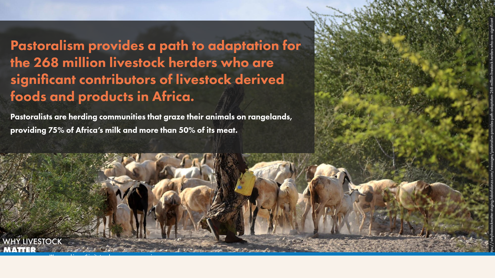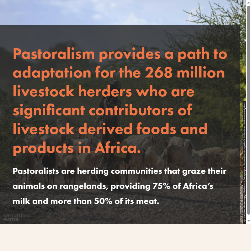 Pastoralism provides a path to adaptation for the 268 million livestock herders who are significant contributors of livestock derived foods and products in Africa.