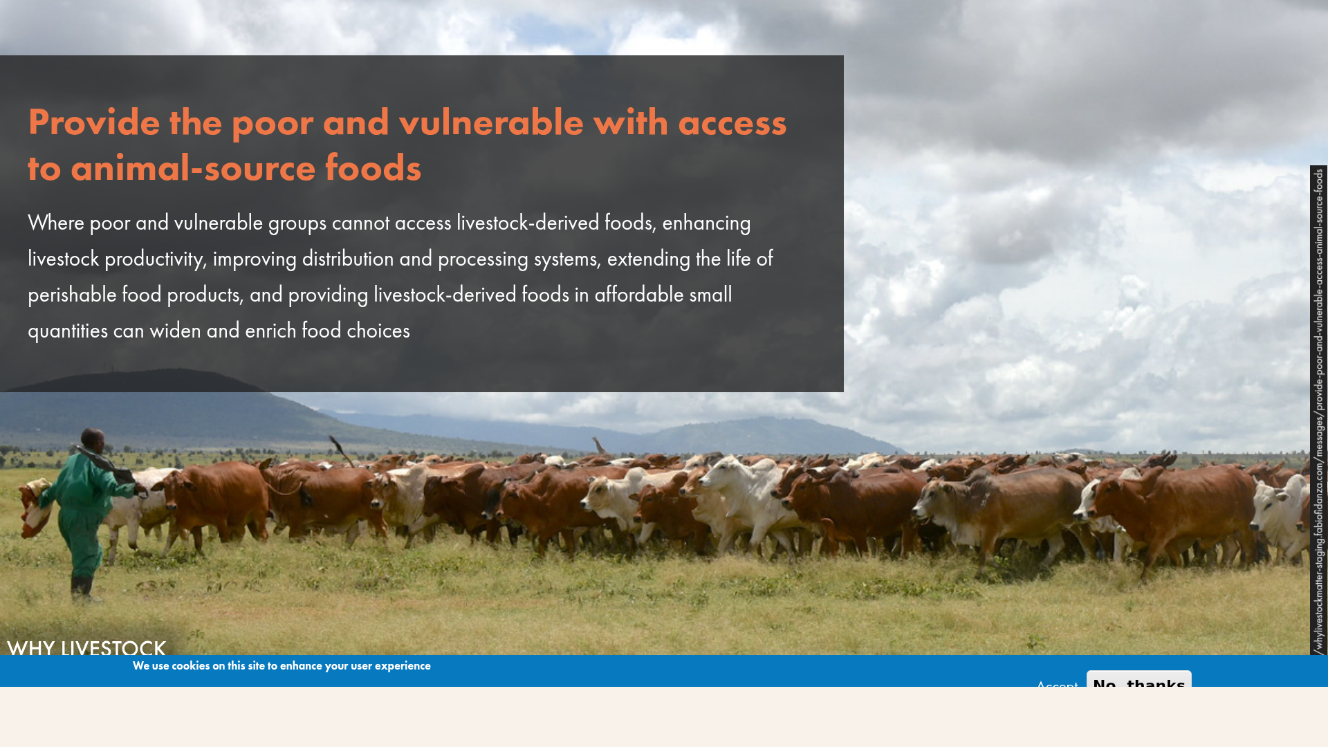 - Reduce the risks of food-borne illnesses in resource-poor settings by increasing awareness of proper washing and hygiene practices when handling livestock and livestock products and managing their waste.