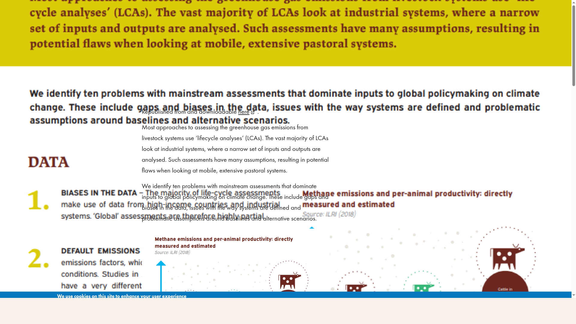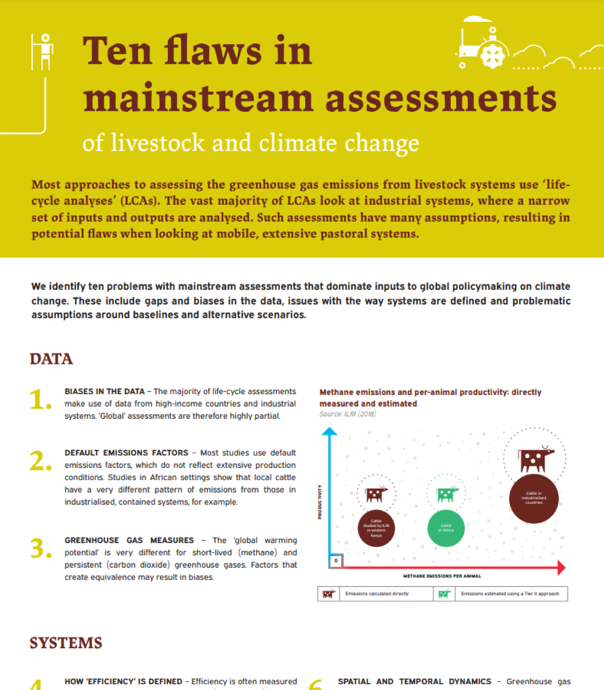 2. DEFAULT EMISSIONS FACTORS – Most studies use default emissions factors, which do not reflect extensive production conditions. Studies in African settings show that local cattle have a very different pattern of emissions from those in industrialised, contained systems, for example.